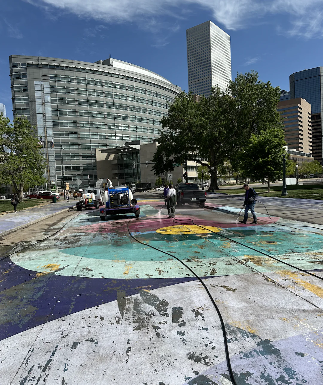 Flat work, statue restoration,grafiti removal, benches, kids play equipment, parking garages, parking lots, event clean up, warehouses, hangers, runways, no SQFT is to big